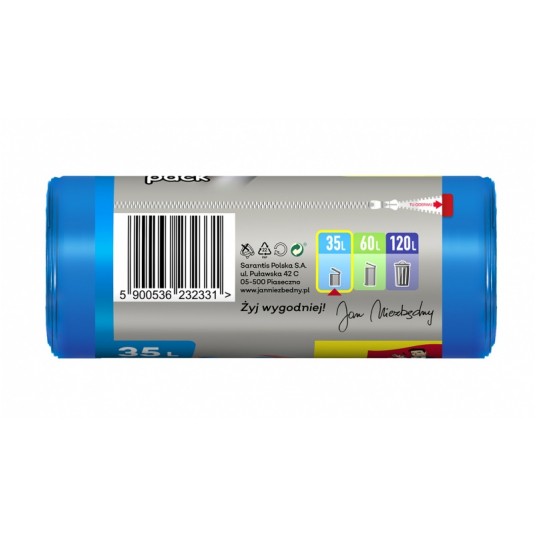 Worki na śmieci hd easy-pack niebieskie Jan Niezbędny 35l 30 szt.