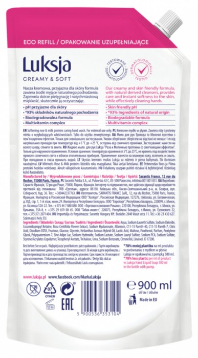 Mydło w płynie Luksja creamy&soft zapas 900ml róża i proteiny mleka