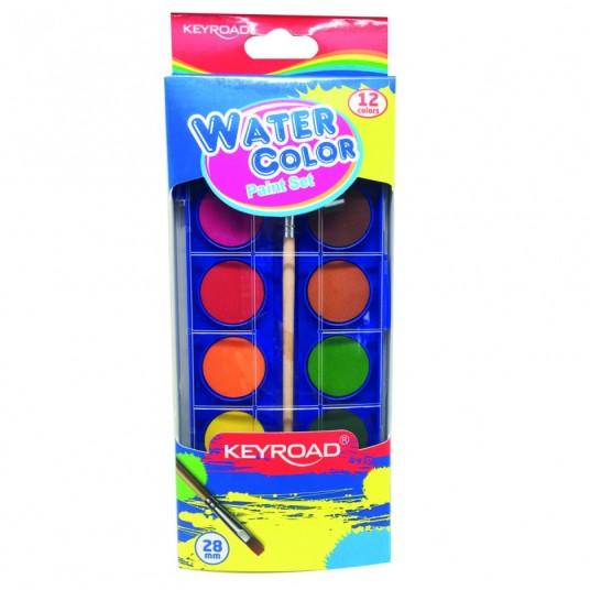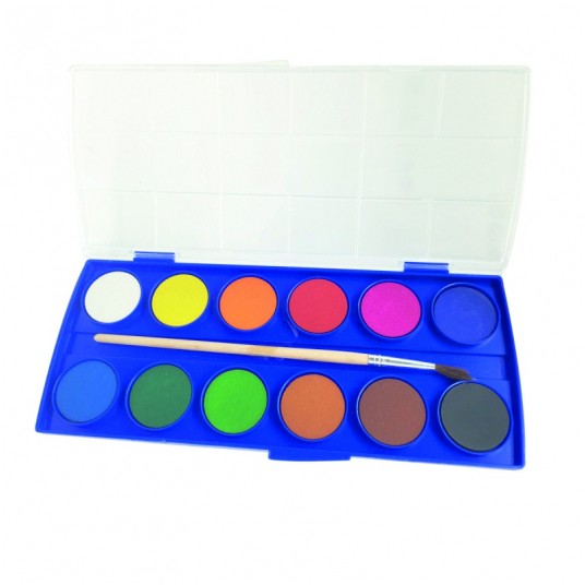 - Szkolne farby akwarelowe, w plastikowym pudełku