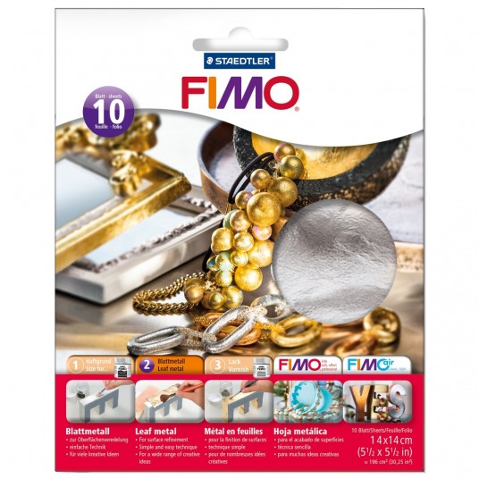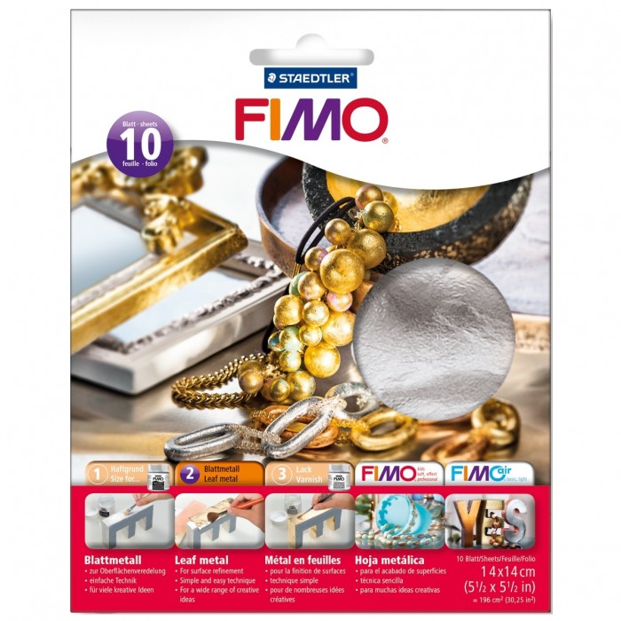 - Arkusz metaliczny Fimo nada wspaniałego akcentu srebra dekorowanej powierzchni