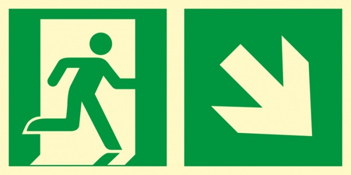 Znak - Kierunek do wyjścia ewakuacyjnego - w dół w prawo