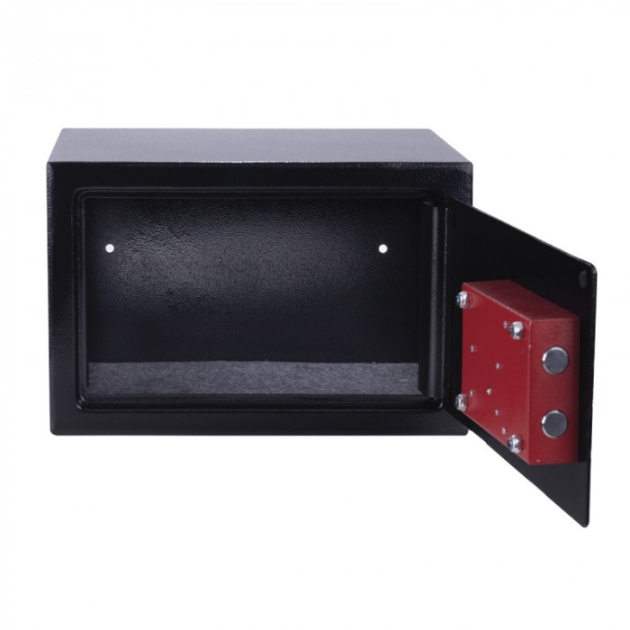 wewnątrz sejfu znajdują się wstępnie wywiercone otwory wraz ze śrubami mocującymi umożliwiającymi trwały montaż na dowolnej powierzchni