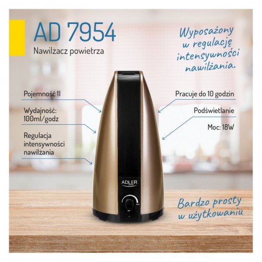 Nawilżacz powietrza ADLER AD 7954, 1L, złoto brązowy