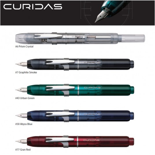 Przyciskowy mechanizm wysuwu stalówki jest bardzo wygodny. Pióro jest natychmiast gotowe do działania, bez potrzeby zdejmowania skuwki. Kolejne kliknięcie powoduje schowanie stalówki i kiedy jest w tej pozycji, uszczelniona, zrobiona z miękkiego materiału komora na stalówkę, zapewnia nieprzepuszczalność powietrza. Specjalnie zaprojektowany klips, który można łatwo usunąć nie przeszkadza podczas pisania. Przezroczysta żywica pozwala zobaczyć wnętrze pióra. Curidas to idealne pióro dla osób ceniących ciekawe, techniczne rozwiązania.