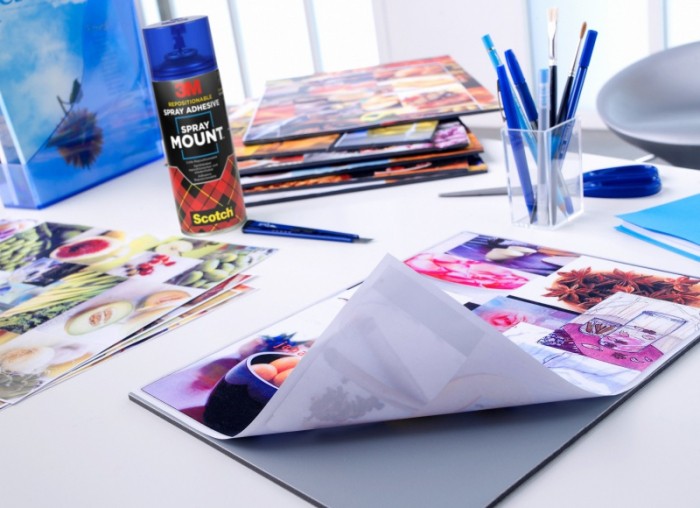 Klej Scotch® SprayMount™ zapewnia doskonałą przyczepność wstępną, a jednocześnie umożliwia tymczasowe podnoszenie i zmianę położenia pracy.