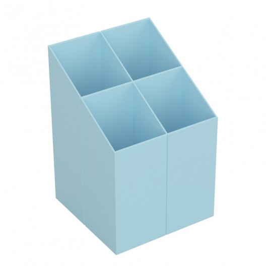 Przybornik na biurko ICO kwadratowy, plastikowy, 4 komory, pastelowy niebieski