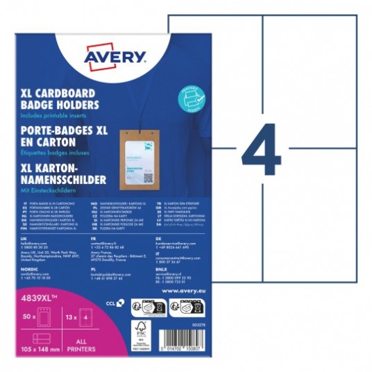 Tekturowe holdery na identyfikatory XL z wkładami 105x148 mm