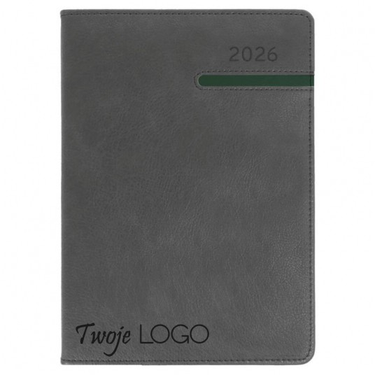 Kalendarz książkowy A4 dzienny Combo grafitowy z zielonym paskiem (zakup 1-9 sztuk) + grawer -- towar sezonowy dostępny tylko do wyczerpania stanów