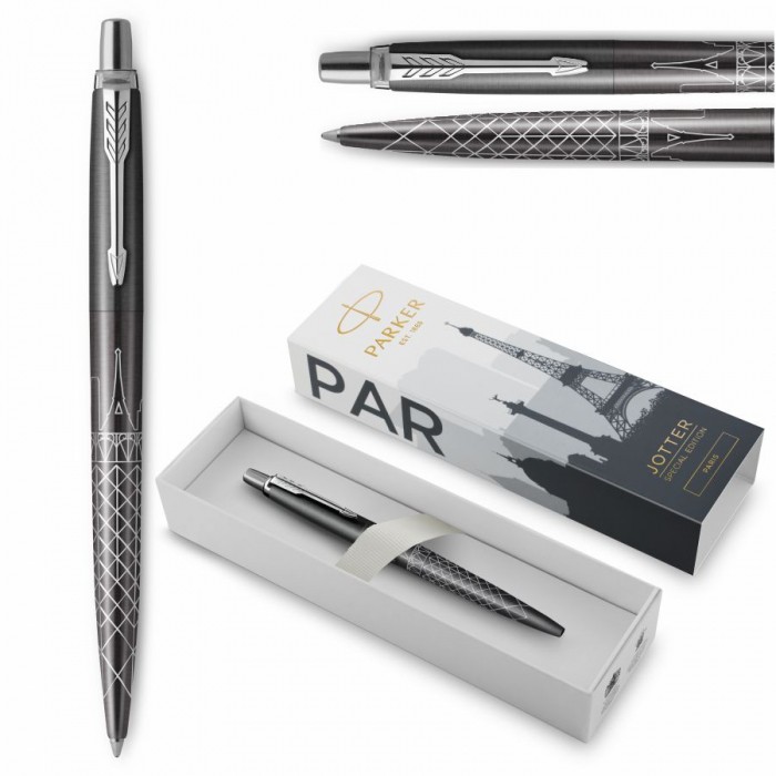 - Edycja Specjalna Jotter Global Icons - Najnowsza kolekcja 2. Edycji Specjalnej Jotter czerpie inspirację z miast całego świata - Ósmy długopis z serii Global Icons oddaje romantyzm i szyk Paryża - Jego wyróżniająca linia szczytów słynnych budynków wyznacza wzór mistrzowsko naniesiony laserem na ciemnoszary korpus - To doskonały towarzysz podróży, zapewniający inspirację dla Twojej kolejnej wyprawy - Nasadka: stal szlachetna z lakierem w kolorze ciemnoszarym - Korpus: stal szlachetna z lakierem w kolorze ciemnoszarym - Wzór: grawerowana laserowo panorama Paryża - Klip: stal szlachetna - Opakowanie: specjalnie zaprojektowane opakowanie prezentowe - Długopis uzupełniany oryginalnymi wkładami Parker do długopisów i długopisów żelowych