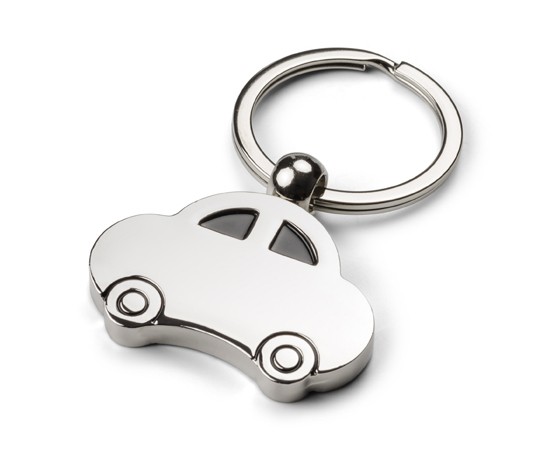 - Brelok do kluczy z zawieszk± w kształcie samochodu, wykonany z chromowanego metalu