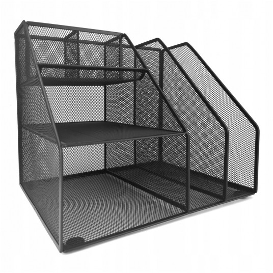 - Organizer z przybornikiem wykonany z metalowej siateczki powlekanej lakierem