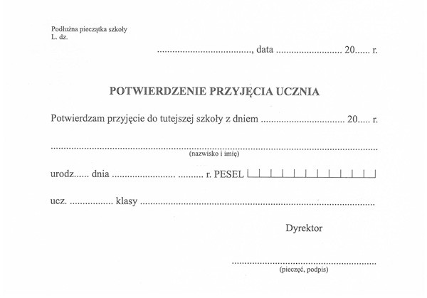 ZAWIADOMIENIE O PRZEKAZANIU UCZNIA VI/17 (KARTON) - zawiadomienie o przekazaniu ucznia (karton), wypełnia szkoła podstawowa przekazująca ucznia do innej szkoły. Format: A-5