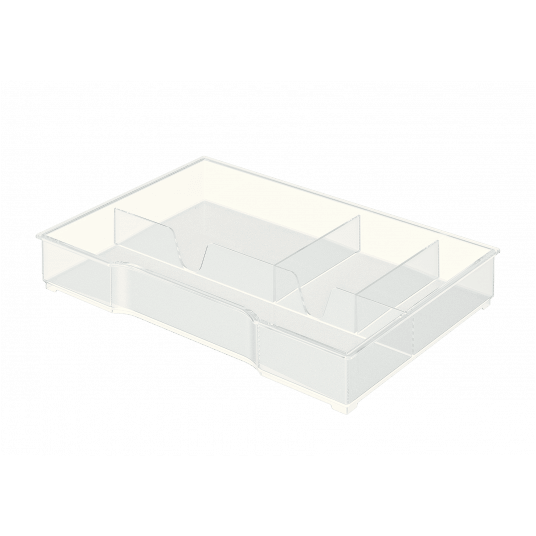 - Uzyskaj doskonale zorganizowaną szufladę dzięki użytecznemu dodatkowi w przezroczystym kolorze