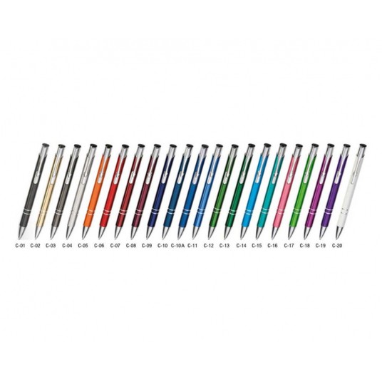 - Długopisy reklamowe COSMO wykonane są z aluminium z chromowanymi elementami.