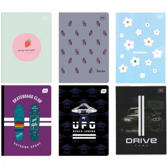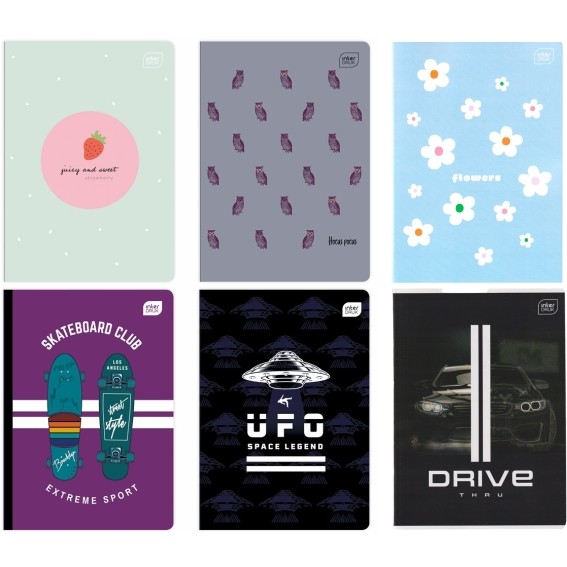 - Format: A5, ilość kartek: 16, 32, 60, 80 (krata, linie, gładki), 96 (krata, linie) oraz 16 (krata - kolor, linie - kolor)