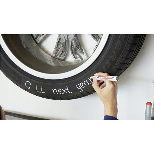 Marker przeznaczony do wykonywania oznaczeń na oponach i powierzchniach gumowych. Okrągła końcówka o grubości 2-4mm. Aluminiowa obudowa. Trwały tusz o niezbyt intensywnym zapachu.