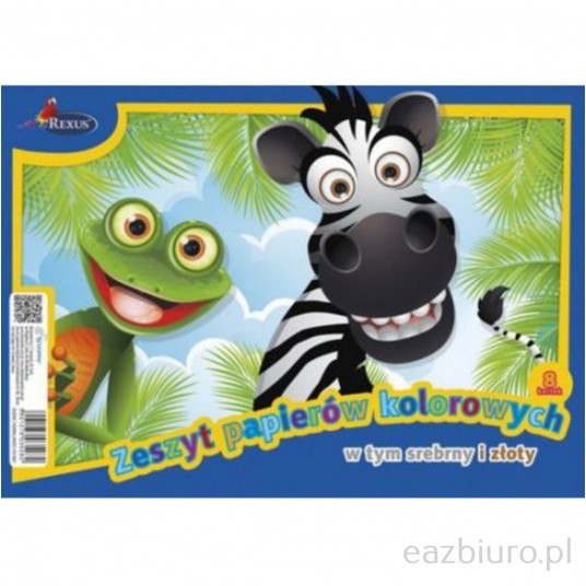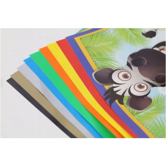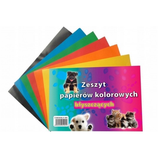 - Wycinanka papierów kredowanych rozmiar A4- 8 kartek połysk w kolorach: czerwony, żółty, pomarańczowy, zielony, niebieski, srebrny, złoty, czarny