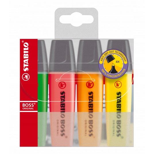 - wszystkie czarne elementy zakreślacza STABILO BOSS ORIGINAL wykonane są w 100% z surowców wtórnych