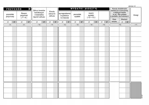 - Zastosowanie: podatnicy prowadzący księgę przychodów i rozchodów