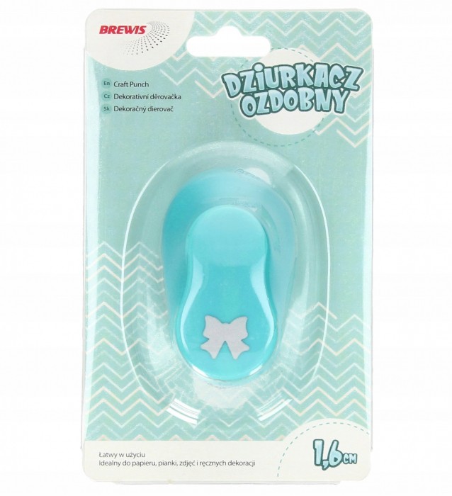 - Dziurkacz ozdobny Brewis, wykrawający otwór w kształcie kokardki