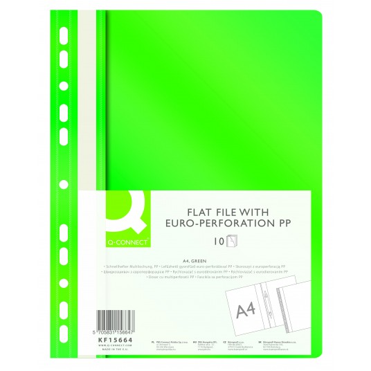 Skoroszyt Q-Connect, pp, A4, standard, 120/170mikr., wpinany, zielony