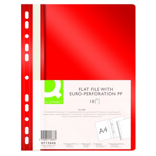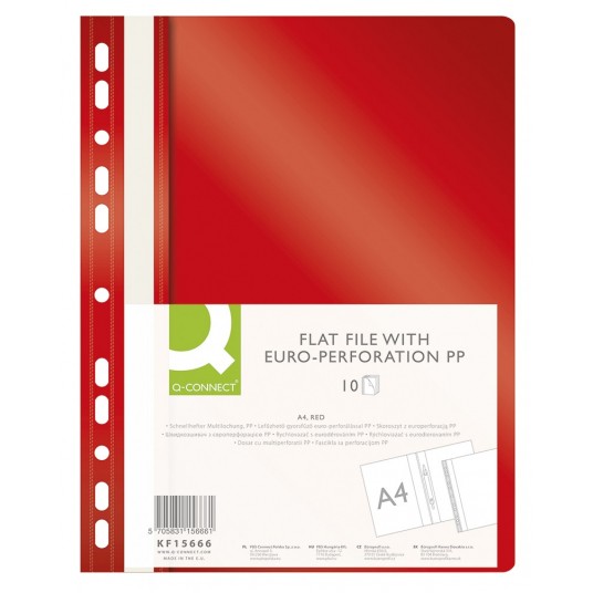 Skoroszyt Q-Connect, pp, A4, standard, 120/170mikr., wpinany, czerwony