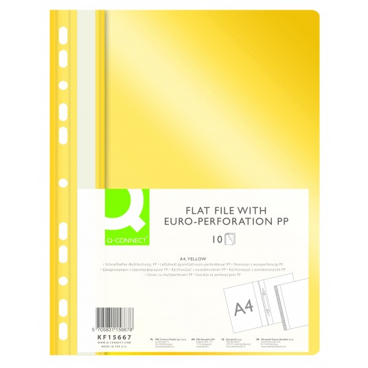 Skoroszyt Q-Connect, pp, A4, standard, 120/170mikr., wpinany, żółty