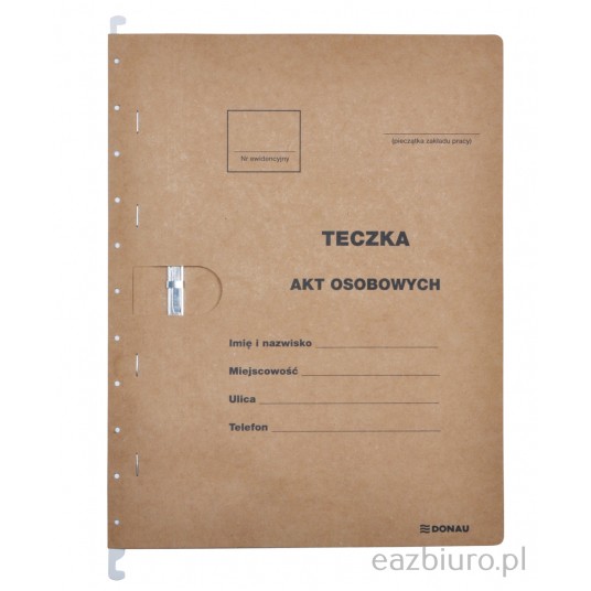 Teczka zawieszkowa Donau na akta osobowe, wersja do 2018 r., karton, A4, 230gsm, brązowa