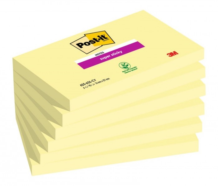 Bloczek samoprzylepny Post-it® super sticky (655-6sscy-eu), 127x76mm, 6x90 kartek, żółty