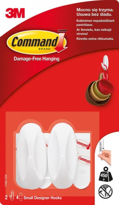Haki wielokrotnego użytku command™ designer (17082 pl), małe, 2 sztuki, białe