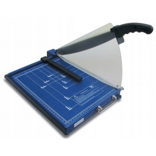 - Posiada ruchomy ogranicznik formatu, umożliwiający dokładne przygotowanie dokumentu do cięcia