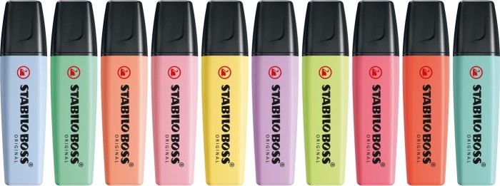 - Zakreślacz pastelowy z tuszem na bazie wody do pisania na wszystkich rodzajach papieru (również faksowym i samokopiującym)