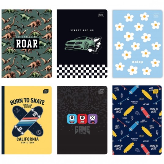 - Format: A5, ilość kartek: 16, 32, 60, 80 (krata, linie, gładki), 96 (krata, linie) oraz 16 (krata - kolor, linie - kolor)