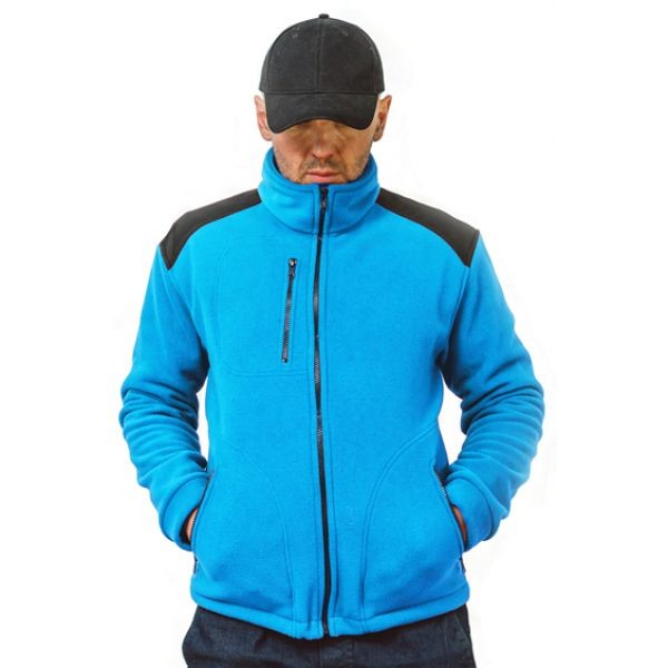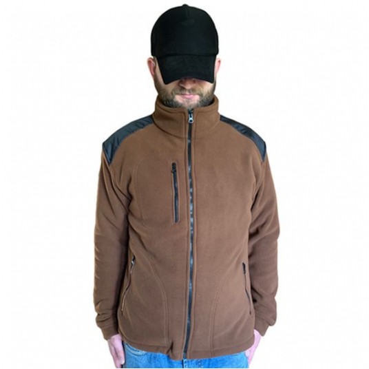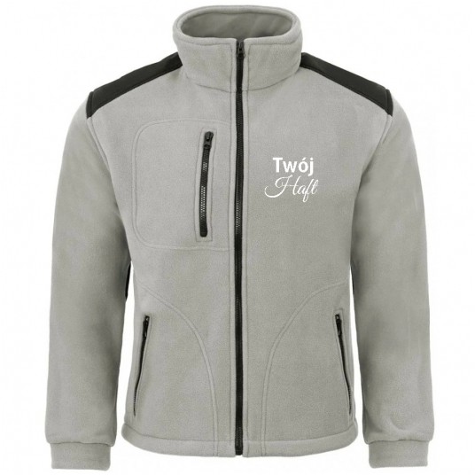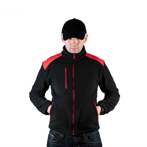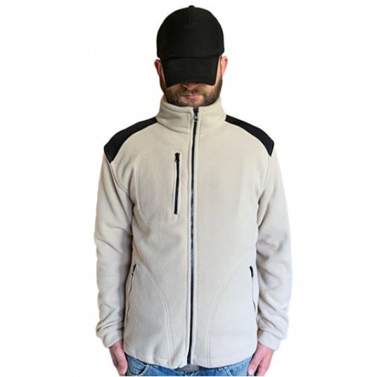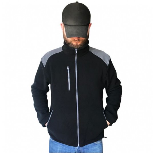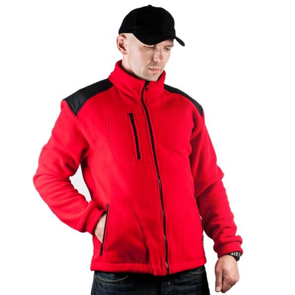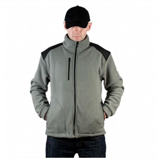 Polar jest gruby i posiada bardzo dobre właściwości cieplne, przyjemny w dotyku, 2 kieszenie zasuwane zamkami błyskawicznymi oraz dodatkowa kieszeń na piersi z zamkiem.