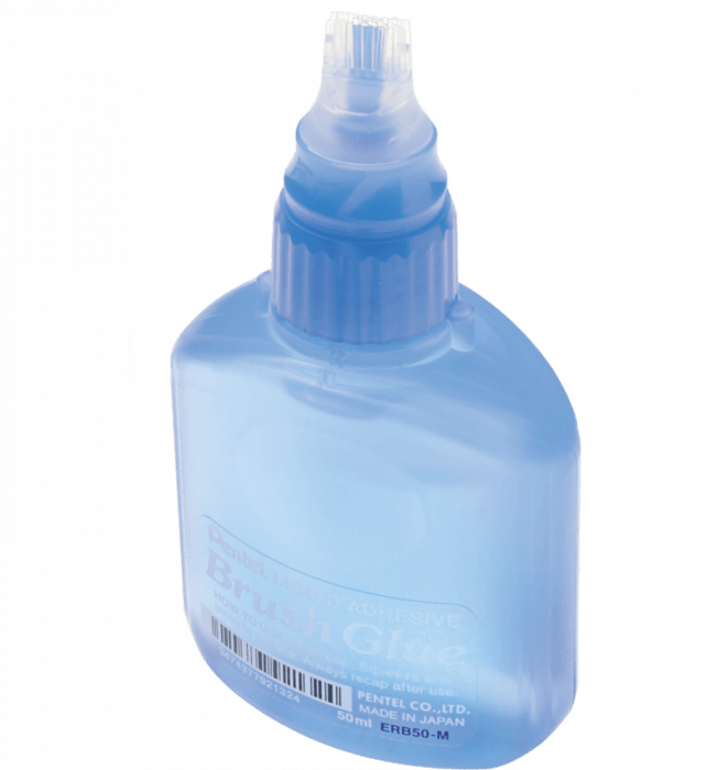 - Klej w płynie z dozownikiem w kształcie pędzelka – klej wypływa jedynie przy jego zetknięciu z powierzchnią.