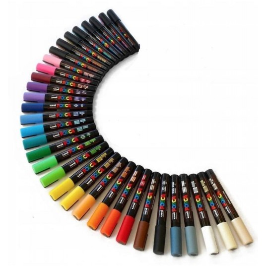 - Uniwersalny marker UNI PC-1M z farbą plakatową do pisania i malowania po każdej powierzchni: papierze, tkaninie, plastiku, terakocie, szkle, porcelanie, metalu, drewnie