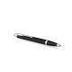 Korpus długopisu Parker IM Matowy Czarny CT wykonano z mosiądzu pokrytego błyszczącym, czarnym lakierem. W serii IM po transformacji wyraźnie zmienił się uchwyt, który obecnie wykonany jest z połyskującego, czarnego materiału polimerowego. Całość wieńczą wykończenia platerowane chromem.