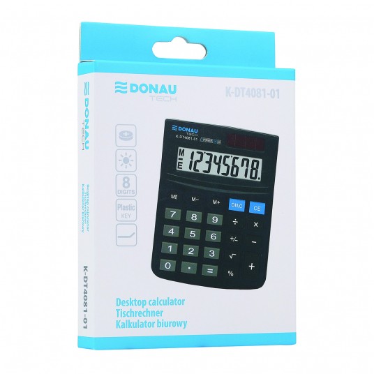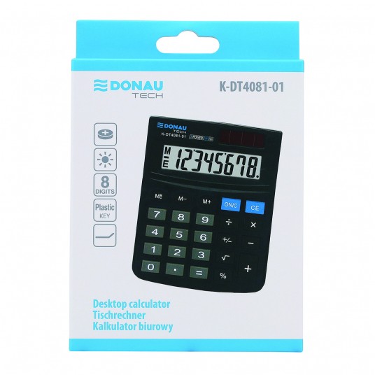 - Kalkulator biurowy z 8-cyfrowym wyświetlaczem z zasilaniem bateryjno -solarnym
