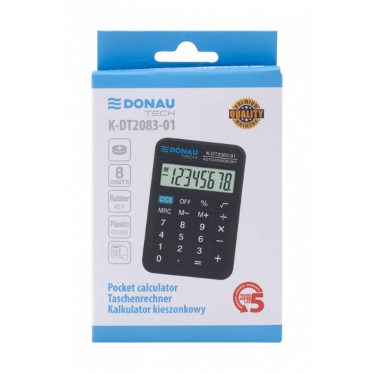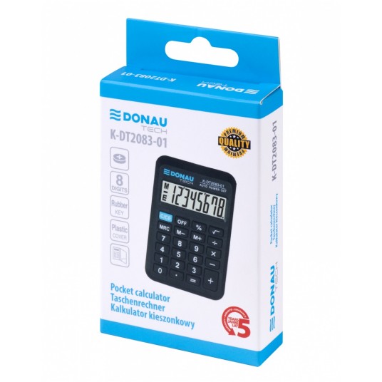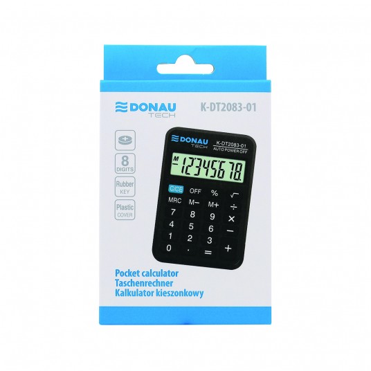 Kalkulator kieszonkowy DONAU TECH, CI-LC110NR, 8-cyfr. wyświetlacz, wym. 89x58x11 mm, czarny