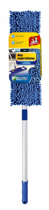 - Mop płaski wykonany jest z grubych frędzli mikrofibry, dzięki czemu chłonie trzykrotnie więcej brudu i wody niż mop z bawełny