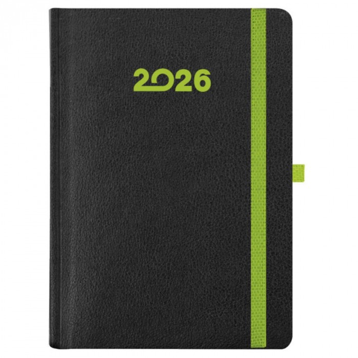 - Blok terminarza szyty nićmi, z kapitałką i tasiemką w kolorze roku oraz perforowanymi narożnikami
