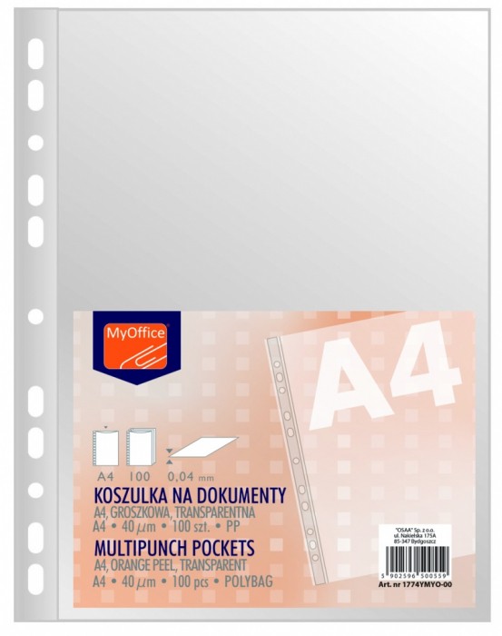 Koszulka na dokumenty my-office, A4/100 szt. pp groszkowa bezbarwna, 40 mikr.