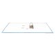 - Wykonany z tektury pokrytej ekologiczną folią polipropylenową o strukturze płótna (100 µm)