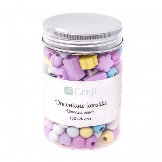 Drewniane koraliki w słoiku mix pastel 150 szt.