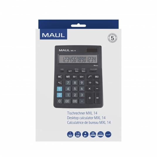 Kalkulator biurkowy business mxl 16, 16-pozycyjny, obliczanie podatku, czarny Maul