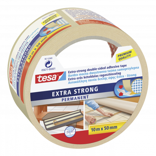 bardzo mocna i wyjątkowo wytrzymałazalecana jest do mocowania solidnych, grubych wykładzin podłogowych oraz do zastosowań na zewnątrz pomieszczeńnadaje się do mocowania wszystkich wykładzin dywanowych i PCVpokryta z obu stron substancją klejącą o zwiększonej przyczepnościmoże być również stosowana przy ogrzewaniu podłogowym i w wilgotnych pomieszczeniachtaśmę można łatwo urwać rękądługość: 10m