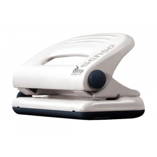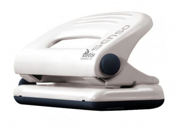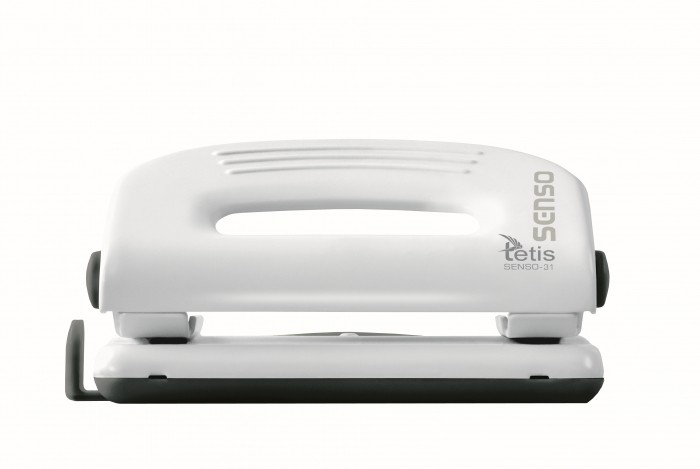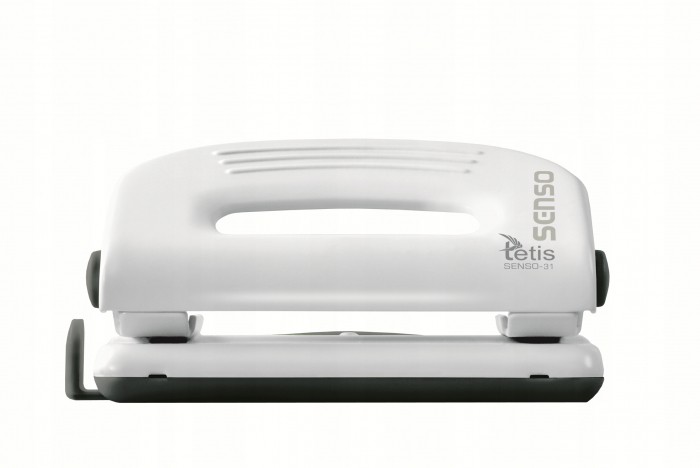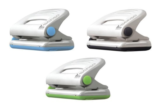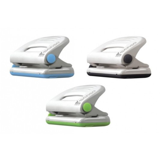 - Metalowy dziurkacz biurowy z wykończeniami z tworzywa sztucznego